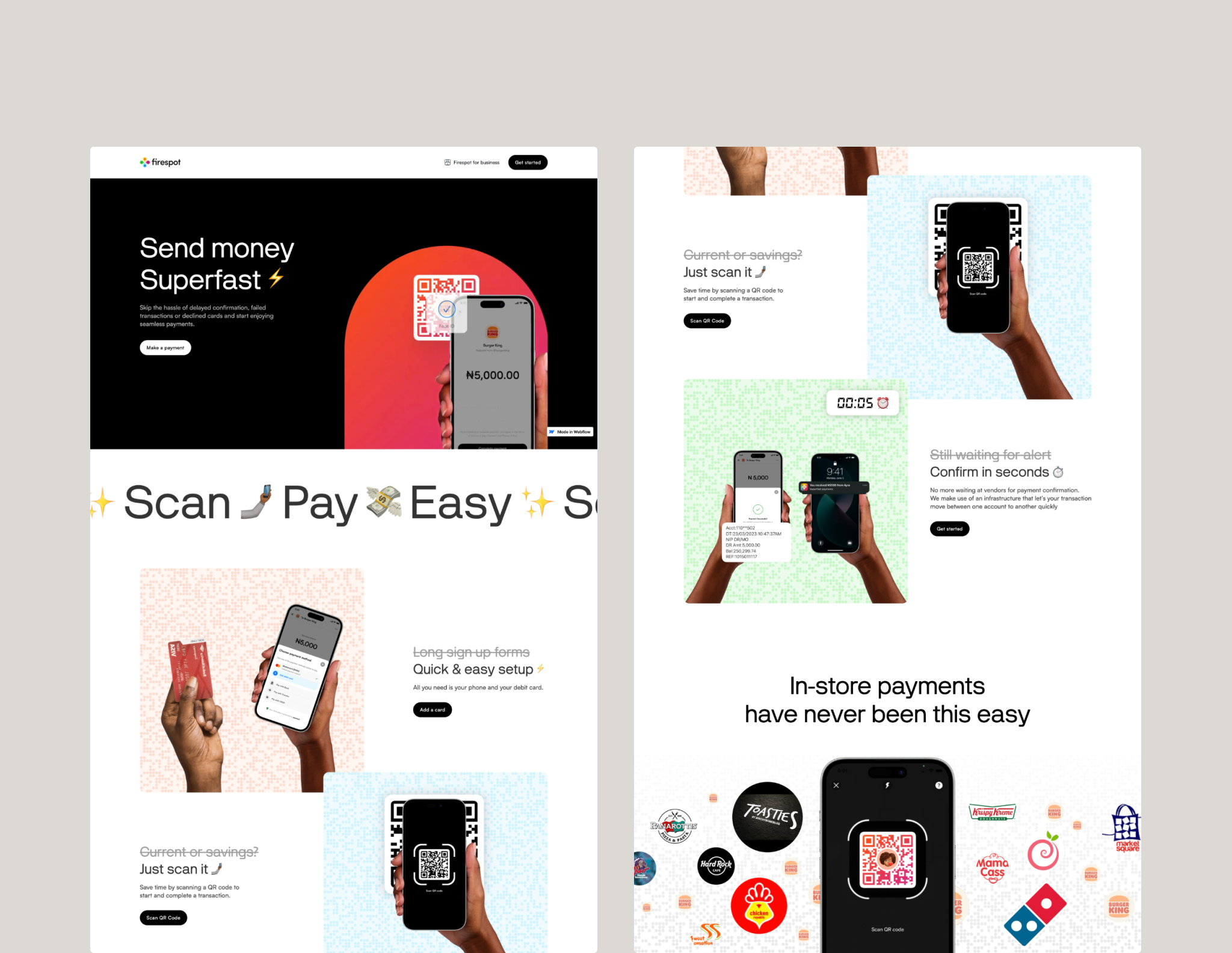 Landing page for superfast payments